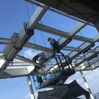 חיפוי אלומיניום 2 מ"מ התבצע בשיטת הרכבה זווית מקומי תוך שמירה על האיטום של המבנה . החיפוי במבנה התבצעה בפרגולות מתכת .